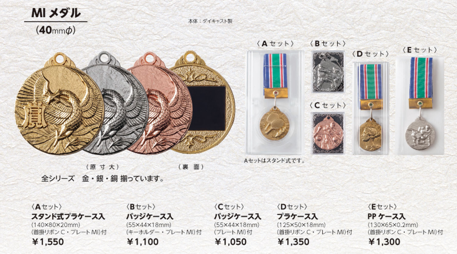 ご注文の際はメダル本体の色(金・銀・銅)と図柄をご指定ください