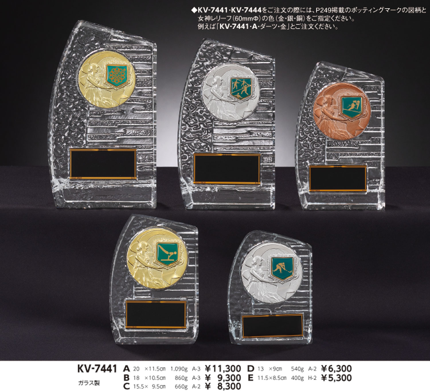 ご注文の際は女神樹脂レリーフ(60mmφ)の色(金・銀・銅)とポッティングマークの図柄をご指定下さい