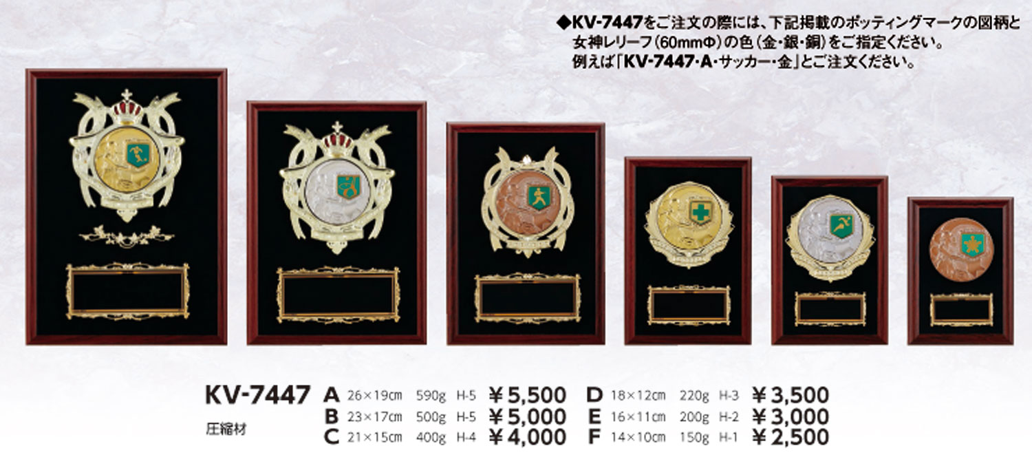 ご注文の際は女神樹脂レリーフ(60mmφ)の色(金・銀・銅)とポッティングマークの図柄をご指定下さい