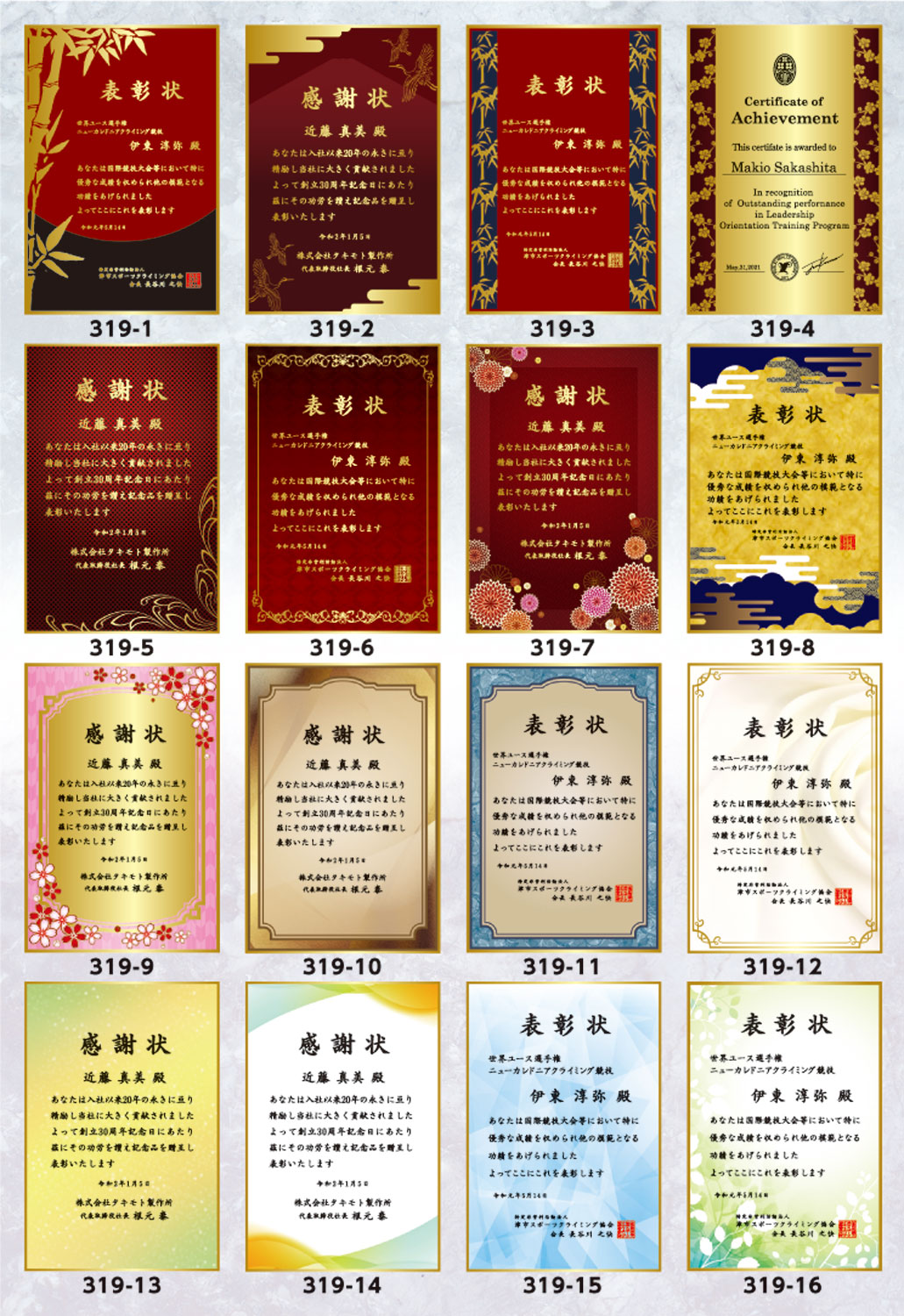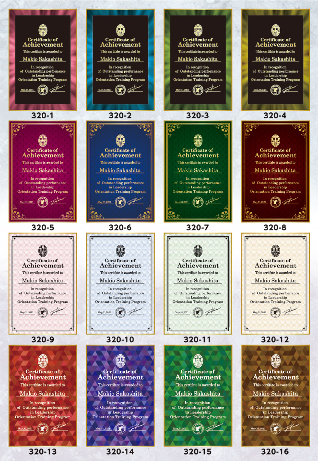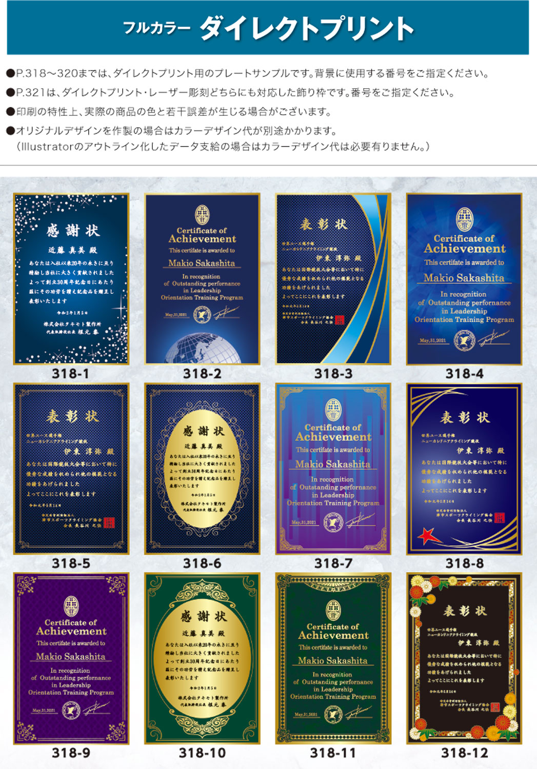 - ダイレクトプリント用のプレートサンプルです。背景に使用する番号をご指定ください
