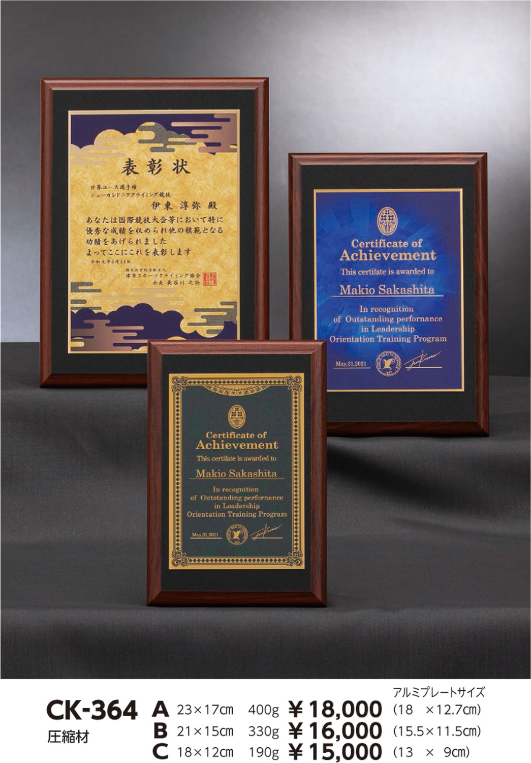 | CK364-A | 23×17cm(18×12.7cm) | 400g | 18,000円 | 15,840円 |