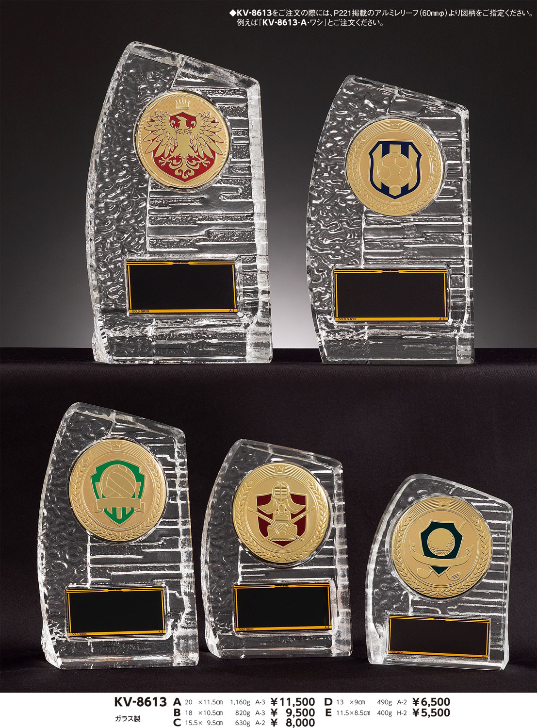 ガラス製/アルミレリーフ/レリーフ交換式/レリーフ:14種類