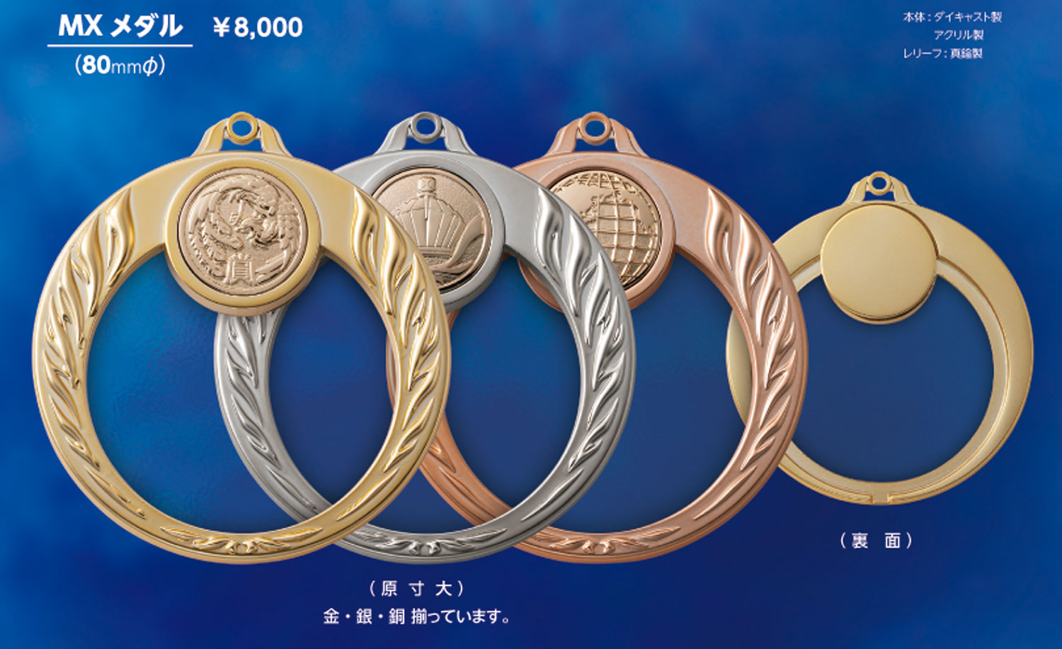 本体:ダイキャスト製・アクリル製/レリーフ:真鍮製 ご注文の際はメダル本体の色(金・銀・銅)と図柄をご指定ください
